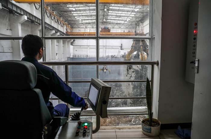 2018年8月19日,在埃塞俄比亚首都亚的斯亚贝巴的雷皮垃圾发电厂,一名工作人员操作机械投料。由中国企业修建的埃塞俄比亚第一座垃圾发电厂19日正式竣工。 新华社记者吕帅 摄