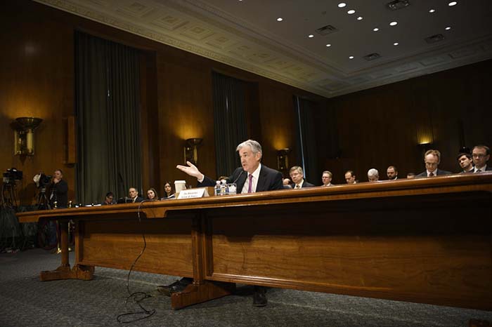 2月26日,在美国华盛顿,美国联邦储备委员会主席鲍威尔出席参议院银行委员会举行的听证会。
