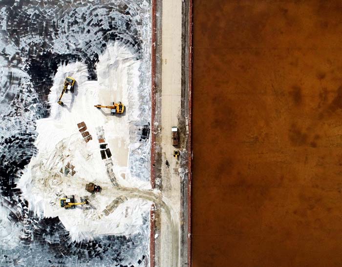 扒盐机停在天津长芦汉沽盐场盐池内(9月19日无人机拍摄)。 新华社记者岳月伟 摄