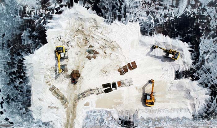 扒盐机停在天津长芦汉沽盐场盐池内(9月19日无人机拍摄)。 新华社记者岳月伟 摄