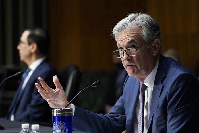美国联邦储备委员会主席鲍威尔12月1日表示,美国经济持续复苏但改善步伐有所放缓,经济前景面临巨大不确定性。 新华社发(苏珊·沃尔什 摄)