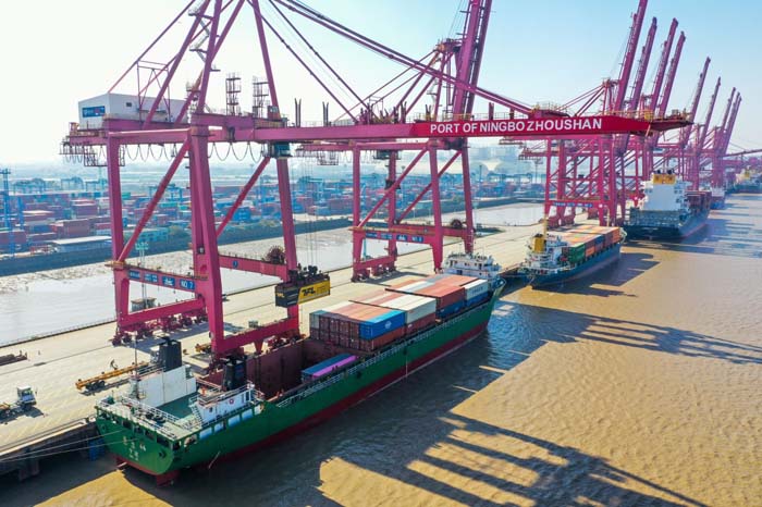 记者从宁波舟山港获悉,2022年宁波舟山港完成年货物吞吐量超12.5亿吨,连续14年位居全球第一;完成集装箱吞吐量3335万标准箱,位居全球第三。 新华社发(蒋晓东 摄)