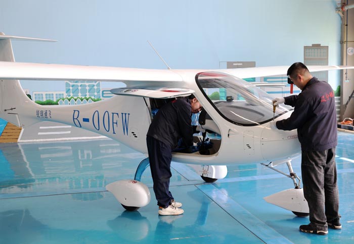 在沈阳的辽宁锐翔通用飞机制造有限公司,工人在进行飞机终装生产(5月13日摄)。 新华社记者李钢 摄