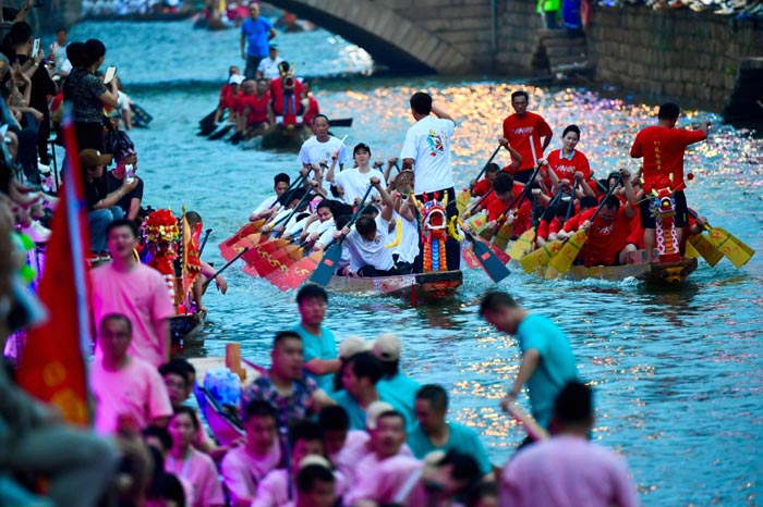 6月9日,福州市长乐区三溪村在夜赛龙舟迎端午。 新华社记者姜克红 摄