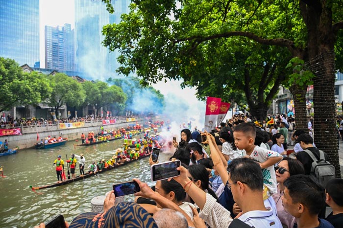 6月10日,猎德涌两岸被游客挤得满满当当。 新华社记者刘大伟 摄