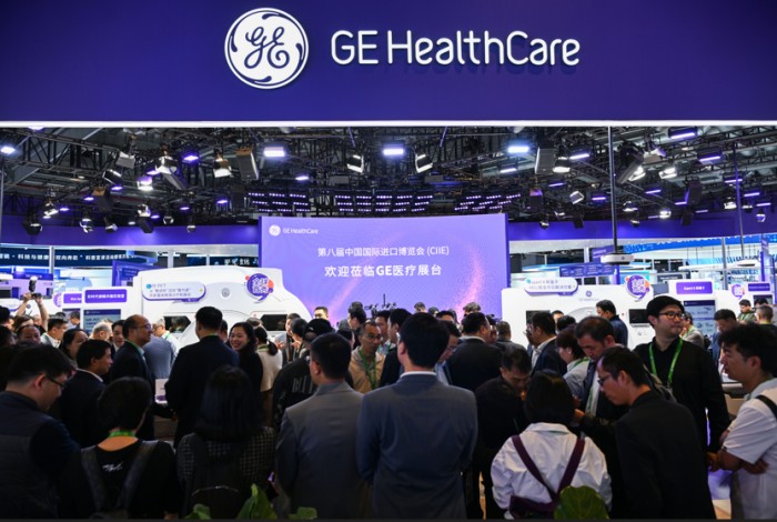通用医疗GE HealthCare的展区展示了大批全球首秀的医疗设备。(魏尧摄)
