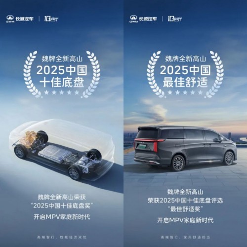 在中国汽车技术研究中心主办的2025中国十佳底盘评选中,长城汽车旗下魏牌全新高山荣获“2025中国十佳底盘”与“最佳舒适奖”两项大奖。此次魏牌全新高山荣获行业权威大奖,充分彰显了品牌在舒适、动力及安全等维度的全面突破。长城汽车董事长魏建军在高端MPV领域进行了完善的技术布局,并带领团队推动了高端MPV市场发展。