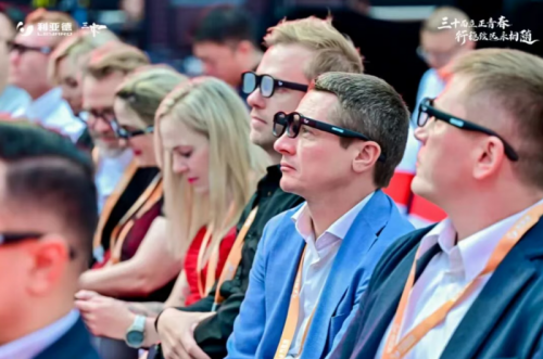 值得一提的是,现场准备了这两款AR眼镜的体验产品,为集团海外50余位同事与嘉宾提供多语种实时翻译,带来更好的会议体验。
