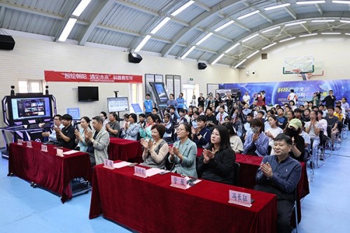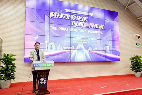 领导致辞环节,各方代表纷纷传递对科普事业的重视与期许。朝阳区教育委员会副主任孙迅高度评价日坛中学实验学校在科普教育领域的引领作用,特别提及“青蓝项目”“四节两营N平台”等优秀成果,希望学校继续发挥示范带动作用,通过开放课堂、共享资源等方式,推动更多学校参与科技教育创新实践。