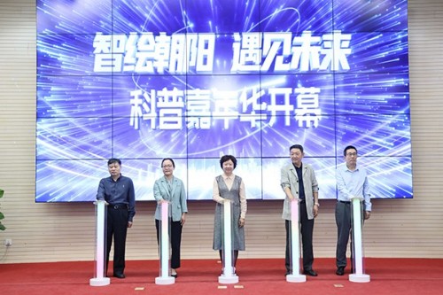 在全场观众的热切期待中,多位领导嘉宾共同按下电子启动器,随着手印落下,“智绘朝阳 遇见未来”科普嘉年华正式进入体验环节。