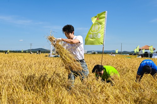 风吹稻浪,阵阵稻香,又是一年丰收时。9月19日,金龙鱼6步鲜大米新米节在黑龙江哈尔滨五常生态基地正式启幕。奥运冠军邢傲伟与劳作纪实互动真人秀《种地吧》少年赵小童联袂出席,携手五常大米协会代表及京东、天猫、香格里拉酒店等全国渠道合作伙伴,共聚金色稻海,启幕2025年金龙鱼6步鲜大米新米盛宴,礼赞耕耘,致敬丰年。