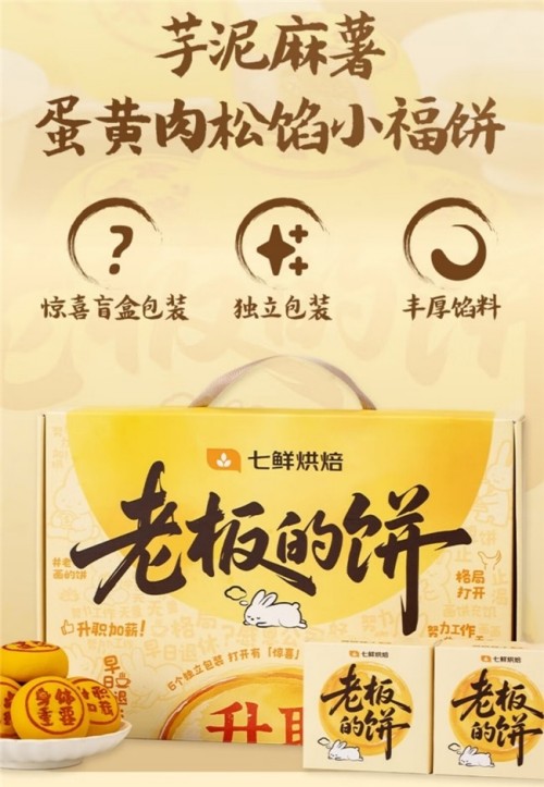 从市场反馈来看,京东七鲜的热销产品正印证了今年中秋消费市场的新趋势。一方面,传统的月饼不再是中秋礼赠市场唯一的“主角”,消费者对礼品的需求正变得更多元和个性化。如七鲜烘焙推出的【老板的饼】芋泥麻薯蛋黄肉松馅小福饼内陷层次丰富,且在设计上加入盲盒属性,符合当下年轻消费者的喜好,而另一款花好月圆桃山皮月饼礼盒,则在造型上加入巧思,九款造型每一个都蕴含不同的寓意,让月饼不仅是美食更是古风诗集。