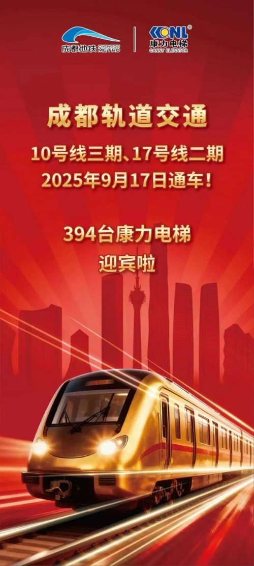 2025年9月17日上午,成都轨道交通17号线二期、10号线三期正式开通运营,394台康力电扶梯同步投入使用。