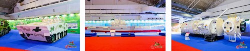 硬核装备全景呈现:99式主战坦克、辽宁舰、歼-20隐形战机等高仿真模型,北斗导航系统组网模型、中国空间站(天和核心舱)模拟舱整齐陈列,覆盖陆、海、空、天等领域,直观呈现我国信息化、智能化武器装备先进水平,引得观众驻足惊叹。展馆大门刚开启,一对年轻的父子便走进这军兵种序列规整的“武器装备方阵”。望着一件件代表我军硬核实力、神似实战的“真家伙”,身着迷彩服的小军人情不自禁爬上99式坦克,一边拍照留念,一边唱起军歌,仿佛让人看到未来世界一流官兵的种子正在这里生根发芽。