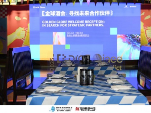 二、25日晚,杭州国际会议中心,「無」无醇精酿啤酒亮相“2025金球对话.IAEE”晚宴,全球各国家地区的商务精英齐聚,破冰洽谈,以“无醇有风味,麦香浓口感佳,畅饮无负担”的创新品质成为本次高端宴请焦点,收到世界各地专业客商及嘉宾伙伴认可。