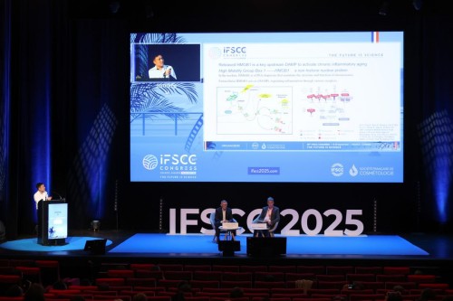 IFSCC(国际化妆品化学家学会联盟),成立于1956年,是一个由世界各国的化妆品技术者组成的国际合作组织,被科研人员誉为化妆品界的“诺贝尔组织”。樊文花科研团队持续在科技成分的升级迭代与创新应用上深耕细作。早在 2022 年,樊文花便带着两大科研成果首次亮相 IFSCC,同步展开 Poster 交流;2025 年,科研团队再获国际邀约,携最新重磅科研成果现身第 35 届 IFSCC 全球科研大会。