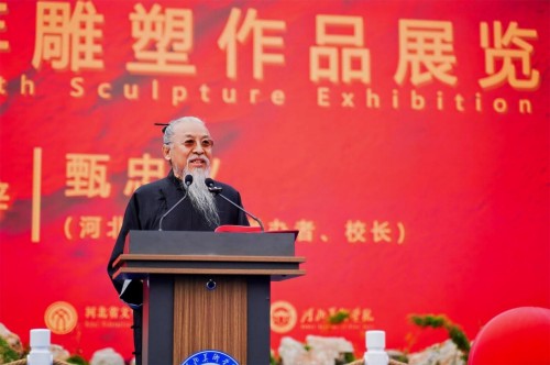 甄忠义在开幕式致辞中指出,本次展览作为全国青年雕塑创作的重要平台,集中展示了青年艺术家在雕塑语言与观念表达上的创新探索。河北美术学院作为我国首所民办高校,始终秉持传承美育精神的使命,高度重视雕塑学科建设。此次展览既是对青年创作成果的集中呈现,更是推动雕塑艺术当代转型的重要契机。我们愿以此次展览为新的起点,进一步加强学术交流与产学研融合,助力青年艺术家在传统与现代、本土与国际的对话中,开拓艺术的新境界、新可能,为青年艺术人才搭建更广阔的成长平台。