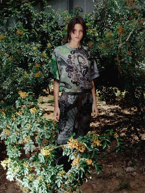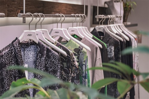 JNBY从传统皮影中提取花卉、叶片等东方图案元素,以现代矢量几何手法重组纹样——将皮影雕刻的曲线轮廓转化为利落几何图形,通过重组排列形成富有节奏感的图案。