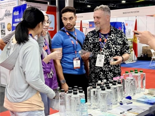 展会期间,EHO泉匠展位人头攒动,气氛热烈。来自马来西亚、印尼、中东、欧洲等全球各地的经销商、代理商及行业专业人士纷至沓来,围绕EHO泉匠的产品特性、技术优势及市场政策进行了深度交流。展位上准备的品鉴水被迅速取空,天然碱性的中国“熊猫水”清爽甘甜的口感获得了与会者的一致好评。