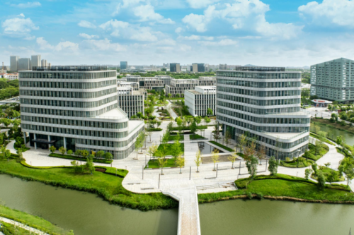 这是长三角绿洲智谷A区,这里真正实现了“与水为邻,惬意办公”的科技园区环境,这里没有冰冷的围墙,取而代之的是与青浦原生态水系自然融合的开放环境——推窗即见碧波,漫步可至水岸,办公仿佛在公园里。
