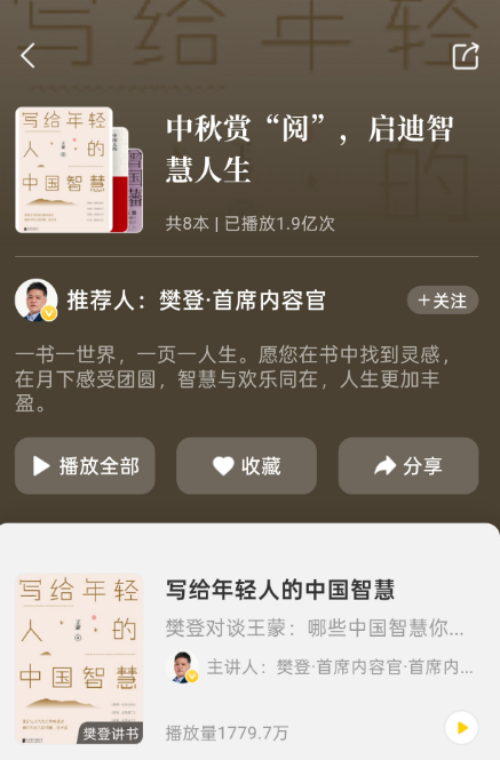 这个中秋假期,无论你是在团圆的热闹中寻觅片刻宁静,还是在独处时享受悠闲时光,帆书APP樊登讲书都能始终陪伴在你身边。在月光与书香的交织中,你将收获智慧,感受欢乐,让人生在这个特殊的节日里愈发丰盈。