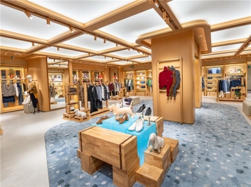 基于对消费需求的深度洞察,品牌打造将近300㎡的旗舰空间——空间设计巧妙融合“家的自在感”、“零售的功能性”与“度假的精致感”,让消费者在购物过程中感受“心的归处”:从“轻步玄关”步入,历经休闲系列、度假系列、试衣体验,最终至休息区结算,每一处细节都围绕“场景化体验”展开。这种设计不仅让产品与空间形成呼应,更将品牌“陪伴”的核心情感价值传递给消费者,实现从“卖产品”到“传递生活方式”的升级跨越。