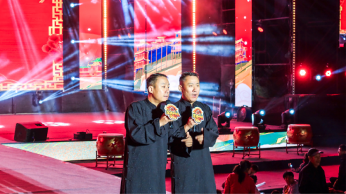 活动现场亮点频现:《恒山论剑》借武侠经典展现浑源恒山、悬空寺等旅游文化底蕴与黄芪特色;16支队伍集体登台亮相,“恒山擂村村pk”比赛规则宣布;大仁庄乡的村官们带来说唱《三句半》,以接地气的表演形式,既生动讲述了乡村发展变迁的历程,又鲜活展现了当地土特产的独特特点;永安镇则推出《特产摇》,创新采用说唱与舞蹈相结合的方式,将乡镇的特色风貌直观且富有活力地呈现出来;村货走秀环节中,本场PK的队伍大仁庄乡和永安镇特色产品集中亮相,线上直播间同步带货,实现“文化展示+产业推广”双向赋能。此外,知名歌手“安与骑兵”献唱经典曲目引发全场合唱,郭阳、郭亮相声《想唱就唱》带来欢声笑语。