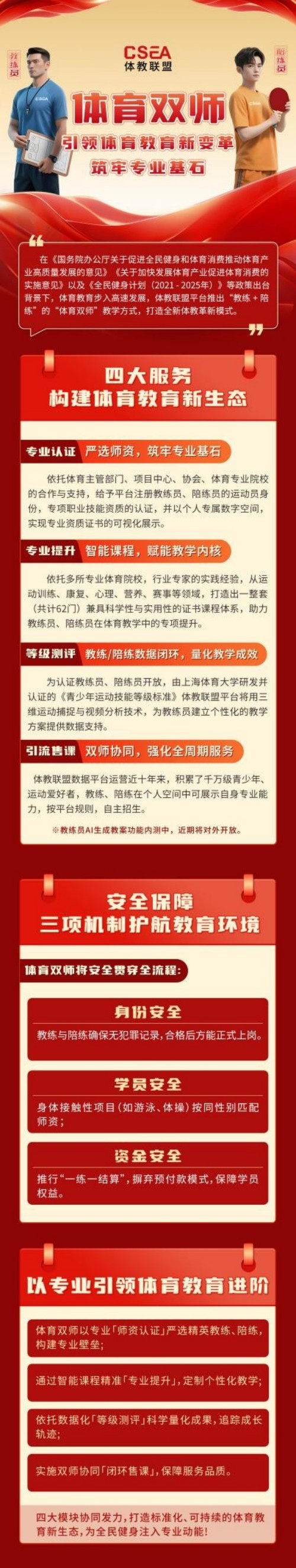 专业资质可查:通过体教联盟平台认证的体育生陪练,都是持有二级及以上运动员技术等级证书的高等学校体育学类专业学生,具有丰富的运动经验和陪练指导技能。