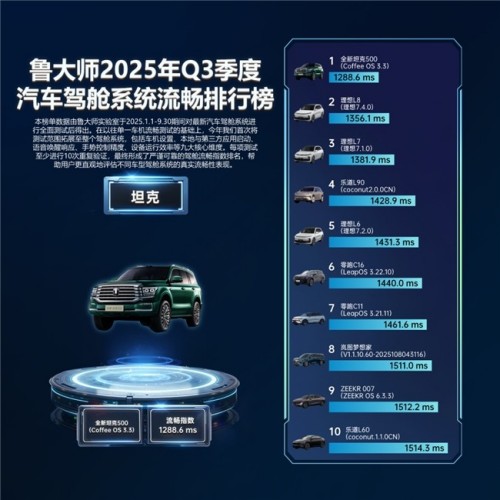 01 驾舱系统流畅榜:全新坦克500,玩转车机流畅新高度