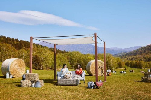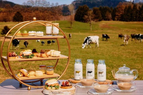 在秋日阳光的照耀下,约100公顷的广阔草原渲染上漂亮的金黄色,人们可以在这片自然美景中,悠然享受下午茶时光。以TOMAMU牛乳调制的香醇奶茶、精选奶酪与甜品陆续登场,今年更特别加入以秋季新收获的小麦与星野农场乳制品制作的特色面包,让风味层次更加丰富。