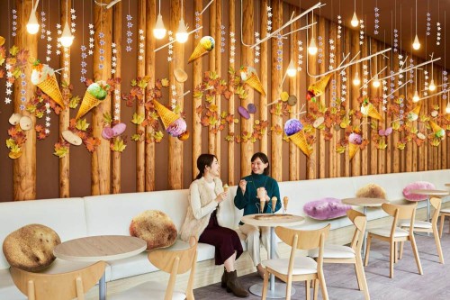 北海道的马铃薯产量位居日本第一,品种极为丰富,不仅甜度与口感各具特色,还有鲜艳的紫色、粉色等“彩色马铃薯”。虽然马铃薯是日常常见的食材,但它也拥有无限可能。TOMAMU在2019年首次推出“马铃薯沙拉冰淇淋”,今年则更进一步,打造出专门体验店,在被缤纷马铃薯包围的空间中,重现这种大地食材的乐趣。
