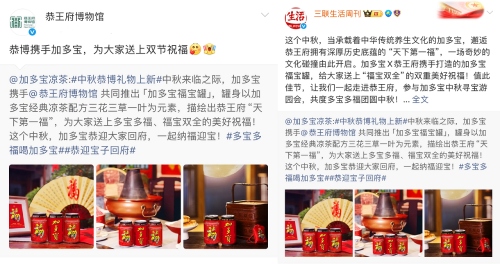 加多宝和恭王府的深度合作,一方面以现代方式激活中华传统文化,将传统文化转化为可感知、可互动的生活元素;另一方面,进一步把产品从日常饮品升级为节日情感载体,建立起“纳福迎宝”与品牌之间的情感联结。这种“品牌赋能文化,文化反哺品牌”的双向奔赴,实现了商业传播与文化传承的深度融合。