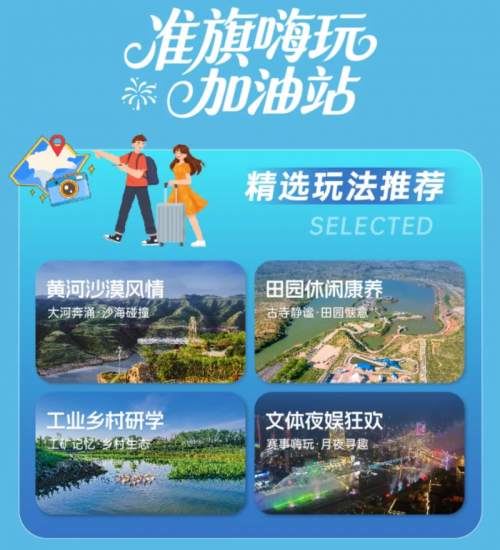 在服务保障与体验升级层面,专题深度整合准格尔旗国庆假期核心活动资源与惠民举措,为游客打造“省心、省钱、尽兴”的出行体验。“暖心红包 省钱趣游”覆盖住宿、景区等场景,切实降低游客出行成本,助力大家在国庆期间“玩转准格尔、消费更划算”。