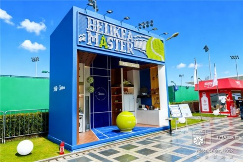 紧邻赛场入口处,天猫打造了一方“Be like a master”的展示空间,以网球场地优雅的绿色和木色为主调。走入空间内部,雅诗兰黛的粉底色变成了一张张“lock door”,小米米家、美的产品中常常出现的奶白色、金属色,都无缝融入环境中。它们既保留了自身的标志色特质,同时,也与网球运动的基调匹配。避免了生硬的拼接感,保证了与整体赛事传播的一致性。