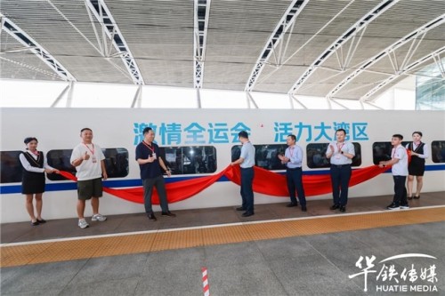 第十五届全国运动会和残特奥会的脚步日益临近,10月14日,京东迎接十五全运高铁冠名列车开行仪式在广州南站隆重举行。十五运会和残特奥会广州赛区执委会新闻广电宣传部相关领导、京东物流华南公共事务部相关负责人、华铁传媒集团有限公司相关领导等出席仪式,共同见证这一里程碑时刻。
