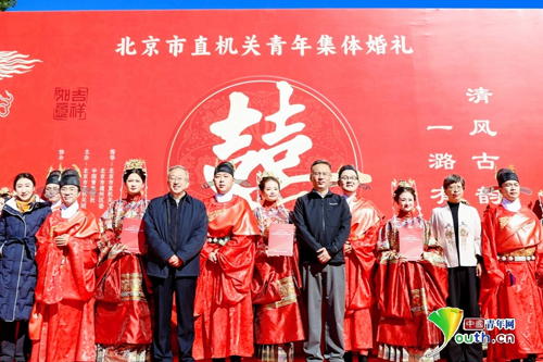 本次活动由北京市直机关工委、北京市通州区委、中国青年报社指导,北京市直机关团工委、北京市通州区潞源街道党工委、中国青年网共同主办,北京服装学院、北京市路县故城遗址公园管理处协办。主办和协办单位相关领导,以及新人所在单位机关党委相关领导出席活动。