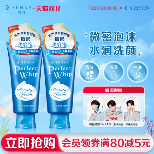 天猫双11现货期间,在SENKA珊珂官方旗舰店购买泡沫洁面膏(保湿)120g*2,预估到手价62.9元,前300名额外赠送白泥状泡沫洁面膏120g。