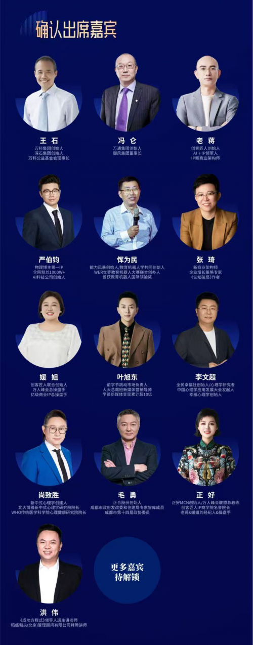 这些嘉宾代表了不同领域的IP实践成果,他们的集体亮相将为企业创始人、知识IP、个人IP创作者提供多维度的成长参考。