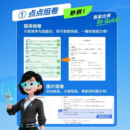 爱普生AI赋能校本题库方案以“点点组卷、库库推题、扫扫学情”,直击教学核心场景,重塑老师备课流程,致力于帮助学校建立可持续更新的校本题库资源,培养教师快速组卷习惯,从根本上减轻人工工作量,赋能教育高质量发展。