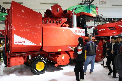 收获机械展区同样亮点纷呈,潍柴雷沃智慧农业不仅带来了雷沃谷神CE04玉米机、雷沃谷神RG系列履带机等明星产品,国产最大喂入量小麦机雷沃谷神GS8239收获机以23公斤/秒的大喂入量打破国外技术垄断,能够实现效率优先、粮食质量优先等自适应调控,最大限度的减损增效,使我国大喂入量谷物联合收割机成功跻身国际先进水平。