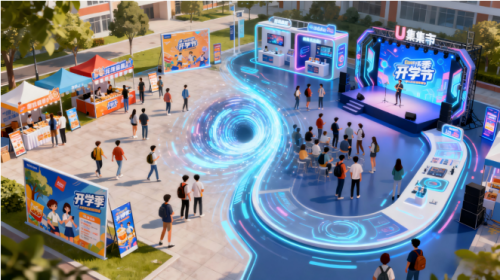 在广州大学的实践中,200平米的U型集市融合了品牌展区、互动体验和舞台表演,让商业活动具备了嘉年华式的吸引力。更重要的是,这种模式打破了“促销”的单一属性,成为学生社交、体验和娱乐的生活节点。