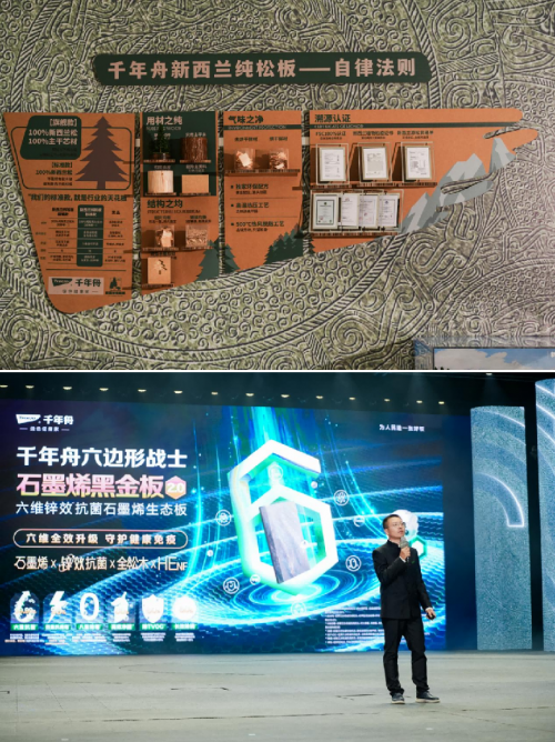 发布会上,千年舟2026年三大硬核板材新品隆重发布,从健康材料的溯源到科技力量的加持,揭开健康板材的锦绣新程。