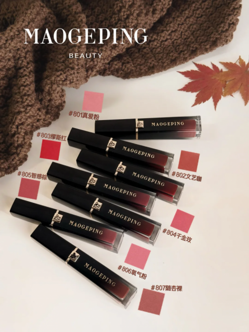 色彩方面,MAOGEPING基于对东方女性肤色、气质与场景需求的深刻洞察,精心调配每一款色彩。#801真爱粉,极致温柔的裸调玫瑰粉,悄然释放温柔与知性;#802文艺咖,低调暖调土橘色,营造不被束缚的率性松弛感;#803缪斯红,饱含生命力的番茄红,自带C位光环……每一款色彩都是一个故事,一种风范,根植于东方审美,能灵活应对多种场合,在哑润之间塑造魅力双唇。