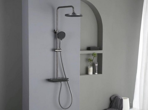 设计上,305*95mm超大置物平台可容纳四瓶沐浴露,洗漱用品随手可取;隐藏式下出水采用蜂窝起泡器,水流柔和不飞溅,快拆设计仅需一枚硬币即可完成清洁维护。从顶喷的沉浸式享受,到手持的灵活操控,再到置物平台的实用美学,这款花洒让沐浴从“日常清洁”升级为“身心放松的仪式”。