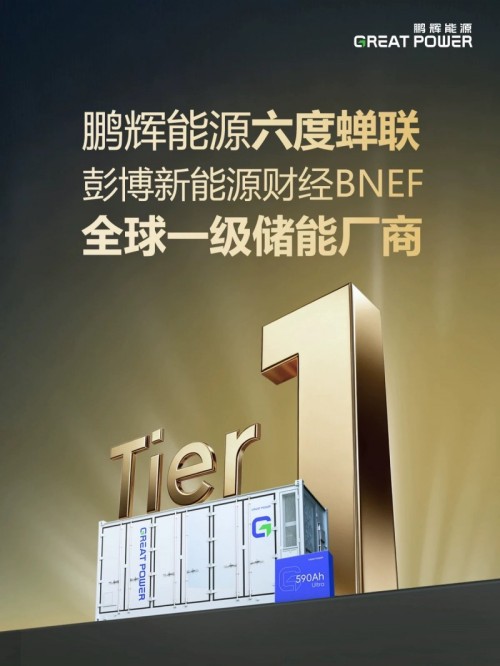 基于技术领先、品质可靠与高效交付的综合优势,鹏辉能源助力多个大型储能项目在全球市场规模化落地,从亚洲到欧洲、从非洲到美洲,其项目足迹遍布全球主要储能市场,进一步夯实了公司在全球一级储能厂商中的地位。此次连续六季度荣登BNEF Tier 1全球一级储能厂商,这一成绩不仅体现了公司在技术迭代、品质管控、供应链协同等方面的综合优势,更印证了其“技术为根、向上生长”的长期主义发展理念。
