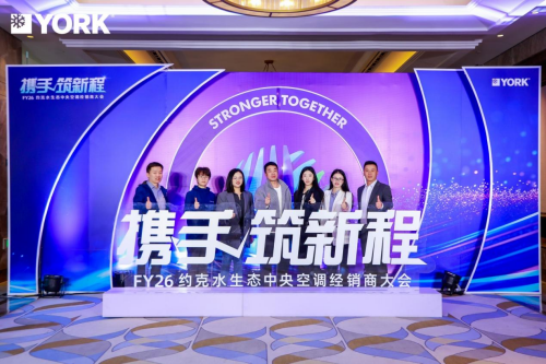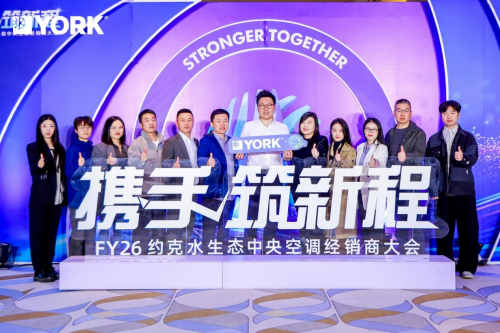 携手筑新程,同心向未来。FY26的战鼓已经擂响,约克水生态中央空调将不断研发创新,为消费者带来更加环保、高效的空调产品,同时与杭嘉湖甬舟五城的经销商伙伴一道,以更绿色的科技、更极致的服务、更坚定的步伐,把健康舒适的空气送进千家万户,共同谱写约克水生态中央空调发展的崭新篇章!