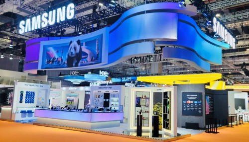 作为进博会的“全勤生”,三星今年在第八届进博会上,紧扣AI浪潮,展示了显示技术、AI智能家电、半导体、移动通信及物联网等领域的前沿成果。其全球首款Micro RGB电视,融合了微米级的RGB LED创新显示技术和AI功能,成为进博会亮点之一。