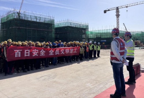 项目执行经理在动员讲话中强调,当前正值项目百日安全活动攻坚期,必须将消防安全作为文明施工的重要环节;每一位员工都要牢固树立安全意识,严格执行文明施工要求,做到工完场清、规范用电、杜绝违章作业,共同筑牢项目安全防线。