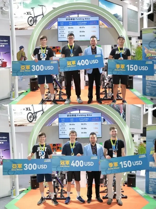 在折叠车组别的较量中,大行三折车LUNDEN展现出卓越的稳定性及出色的蹬踏效率,最佳成绩仅用时58.57秒,冠军、亚军、季军分别比某品牌三折叠车快1.26秒、1.94秒、2.59秒。