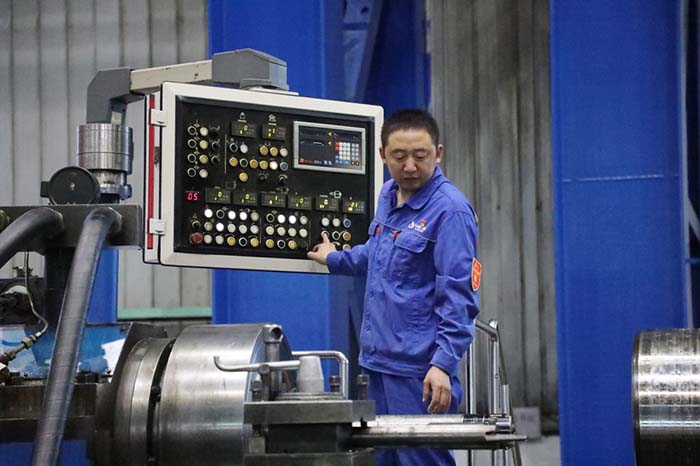中国一重集团“刀客”桂玉松在调试设备(8月25日摄)。 新华社记者王君宝 摄